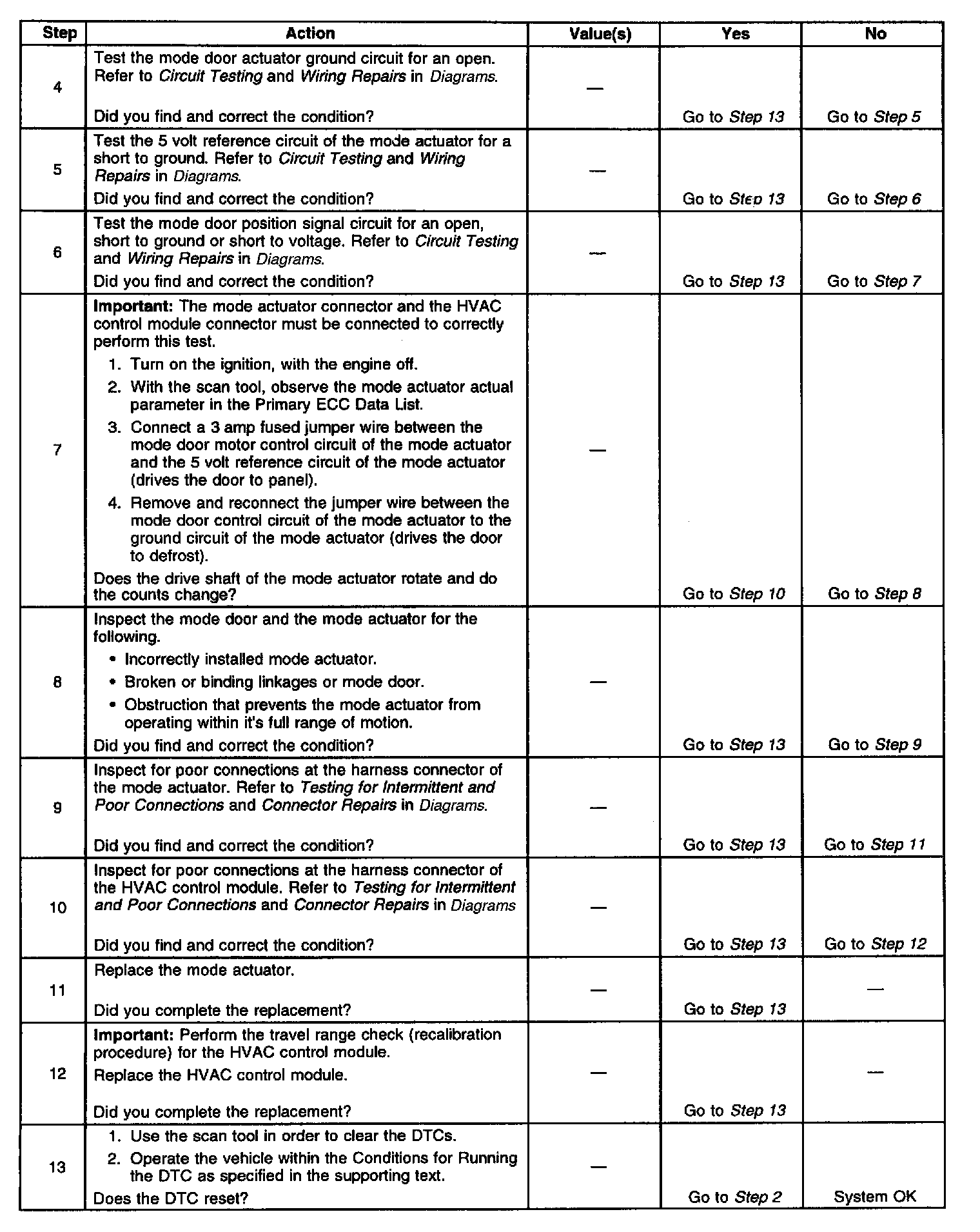 - The range fault can only be detected following a check of the actuator travel range. The actuator travel range check (recalibration procedure) can only be initiated by disrupting power to the HVAC control module.