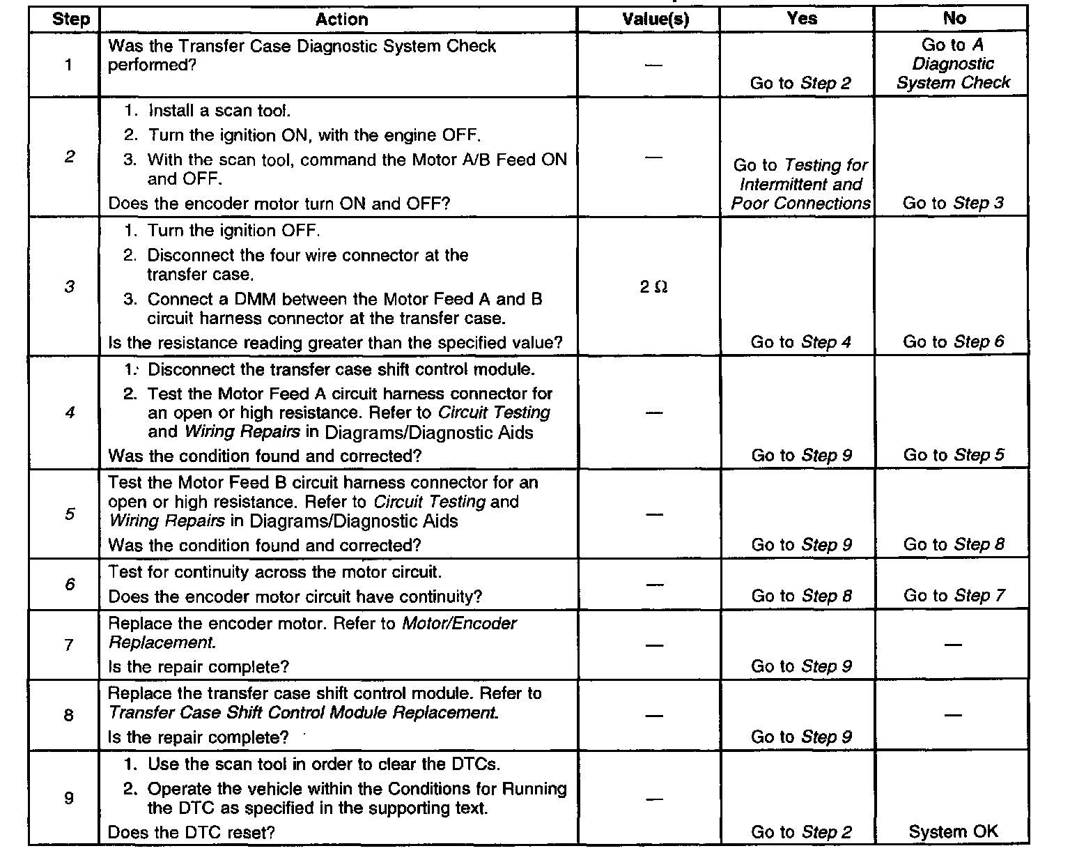 ^ If the system detects a problem with the circuits, the DTC is logged. The transfer case shift control module senses a low voltage return in the Motor Feed A or Motor Feed B circuits when a high voltage is expected.