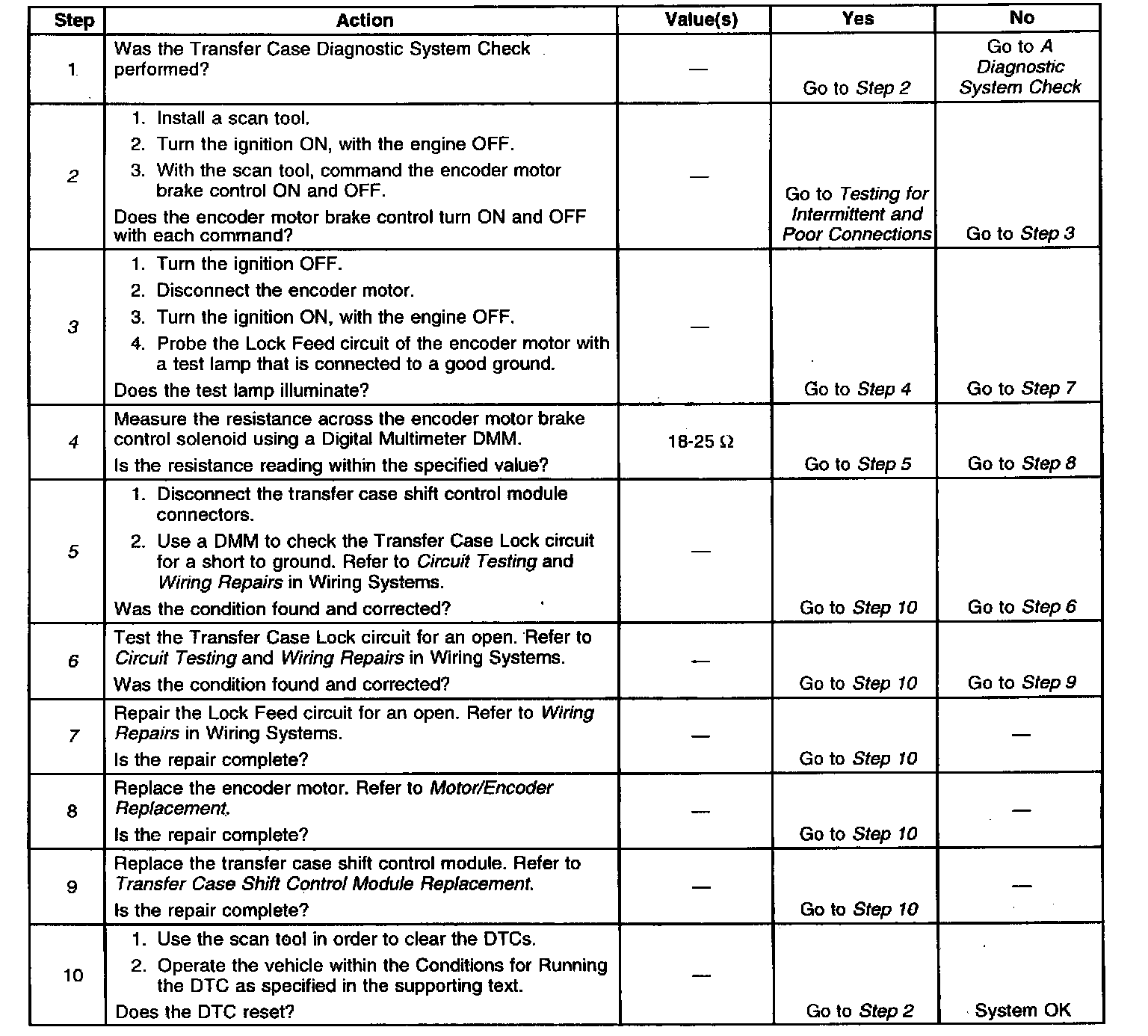^ The transfer case shift control module will clear the DTC if the condition for setting the DTC no longer exists.