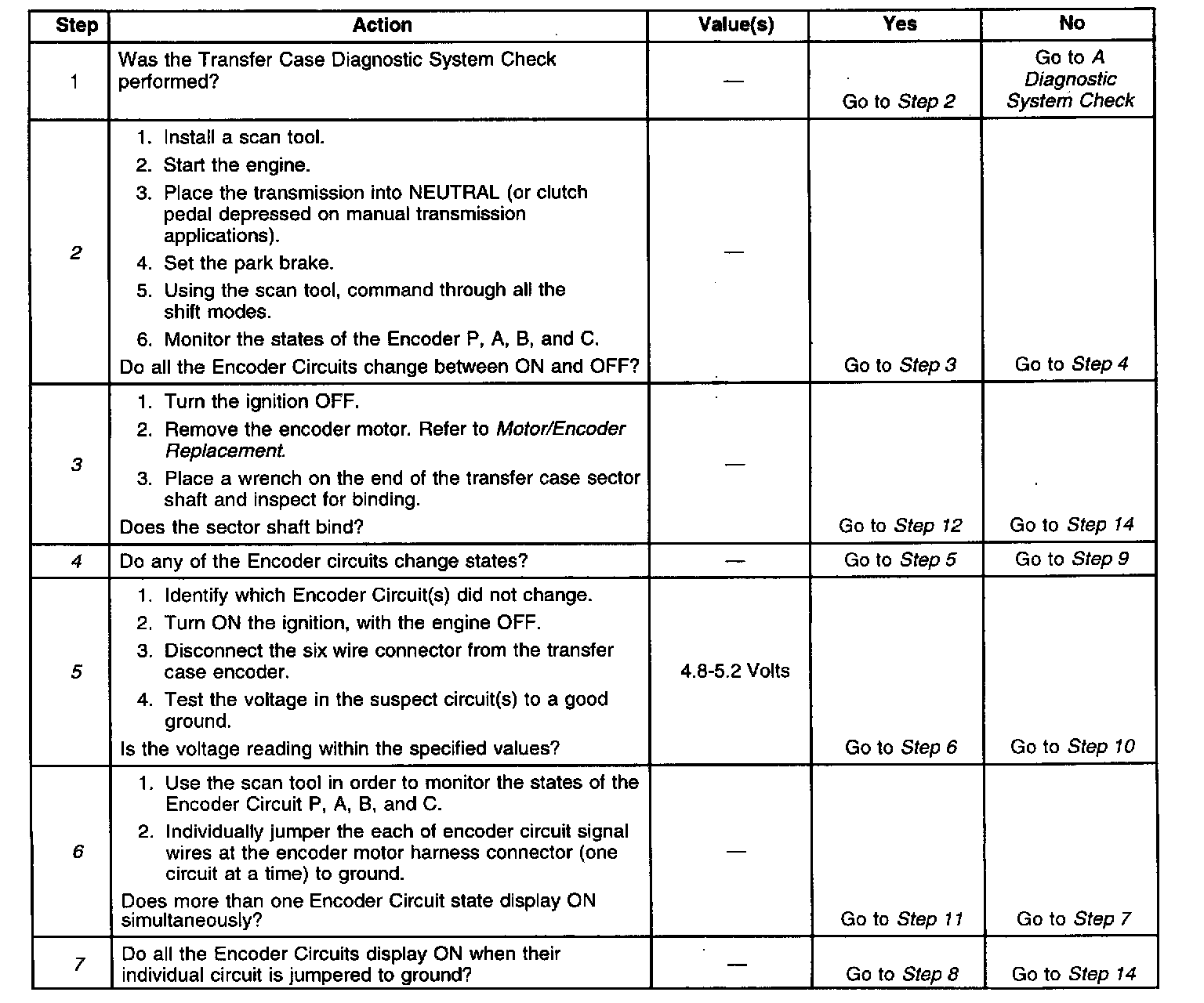 2. Tests whether the transfer case shift control module is sensing any change in all of the encoder channels.