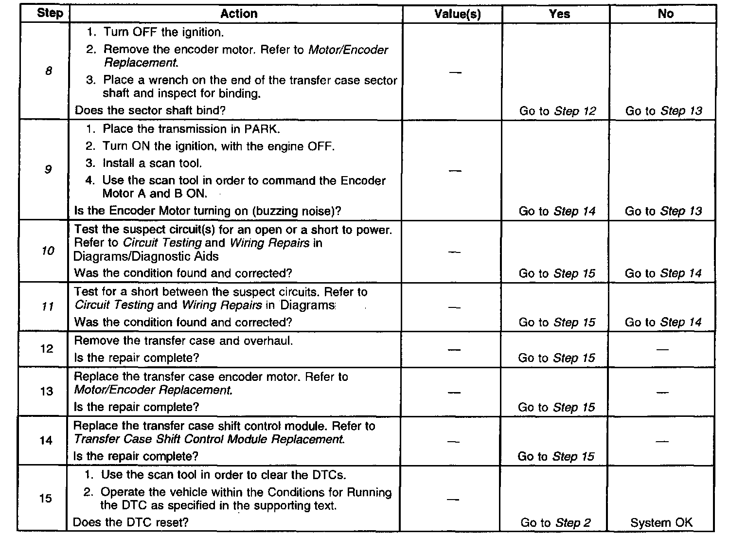 ^ The transfer case shift control module will test the motor circuits and determine that there are no motor circuit faults existing.