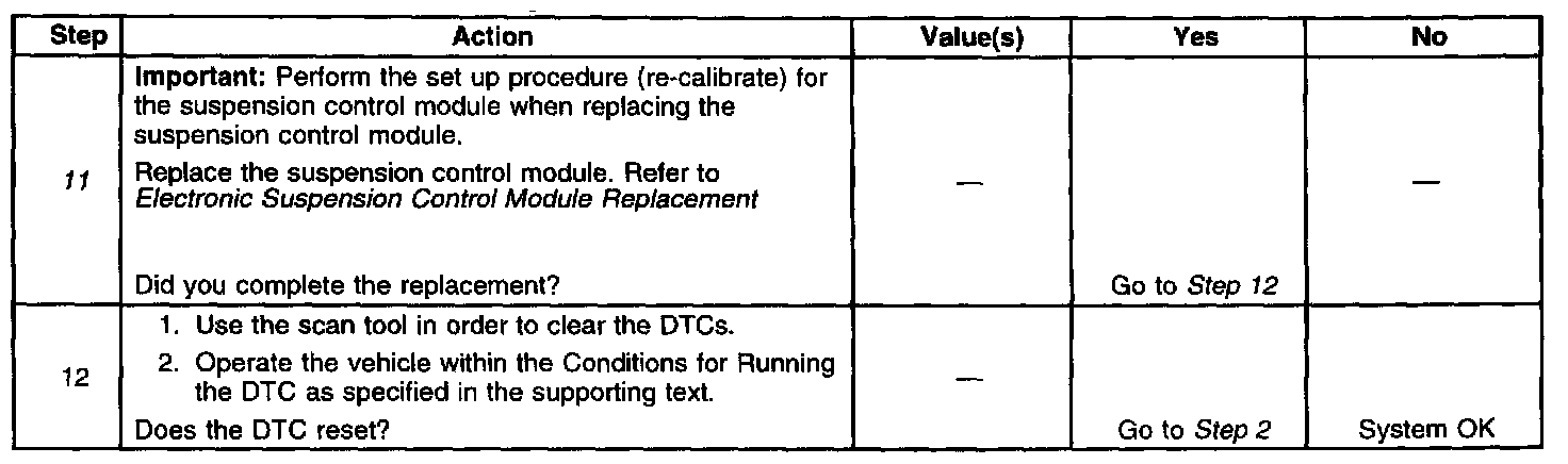 ^ The suspension control module no longer detects a problem in the solenoid low reference or the control circuit of the shock solenoid valve circuits.