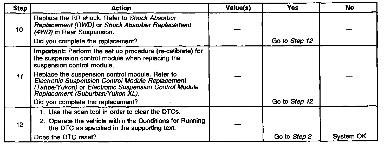 ^ The suspension control module no longer detects a problem in the solenoid low reference circuit or the control circuit of the shock solenoid valve circuits.