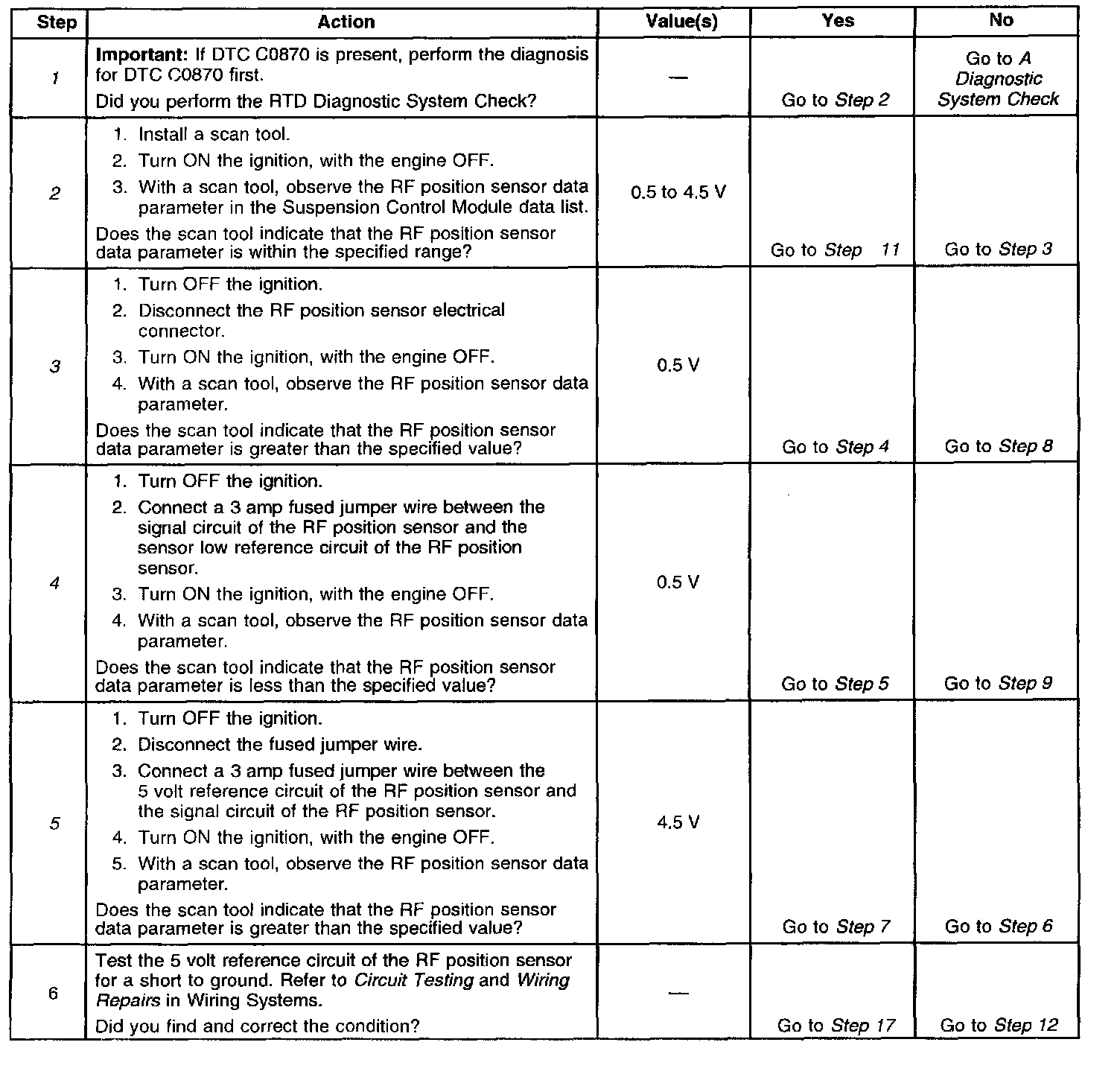 ^ A faulty sensor voltage reading may result if the vehicle is on a host that allows the suspension to hang free.