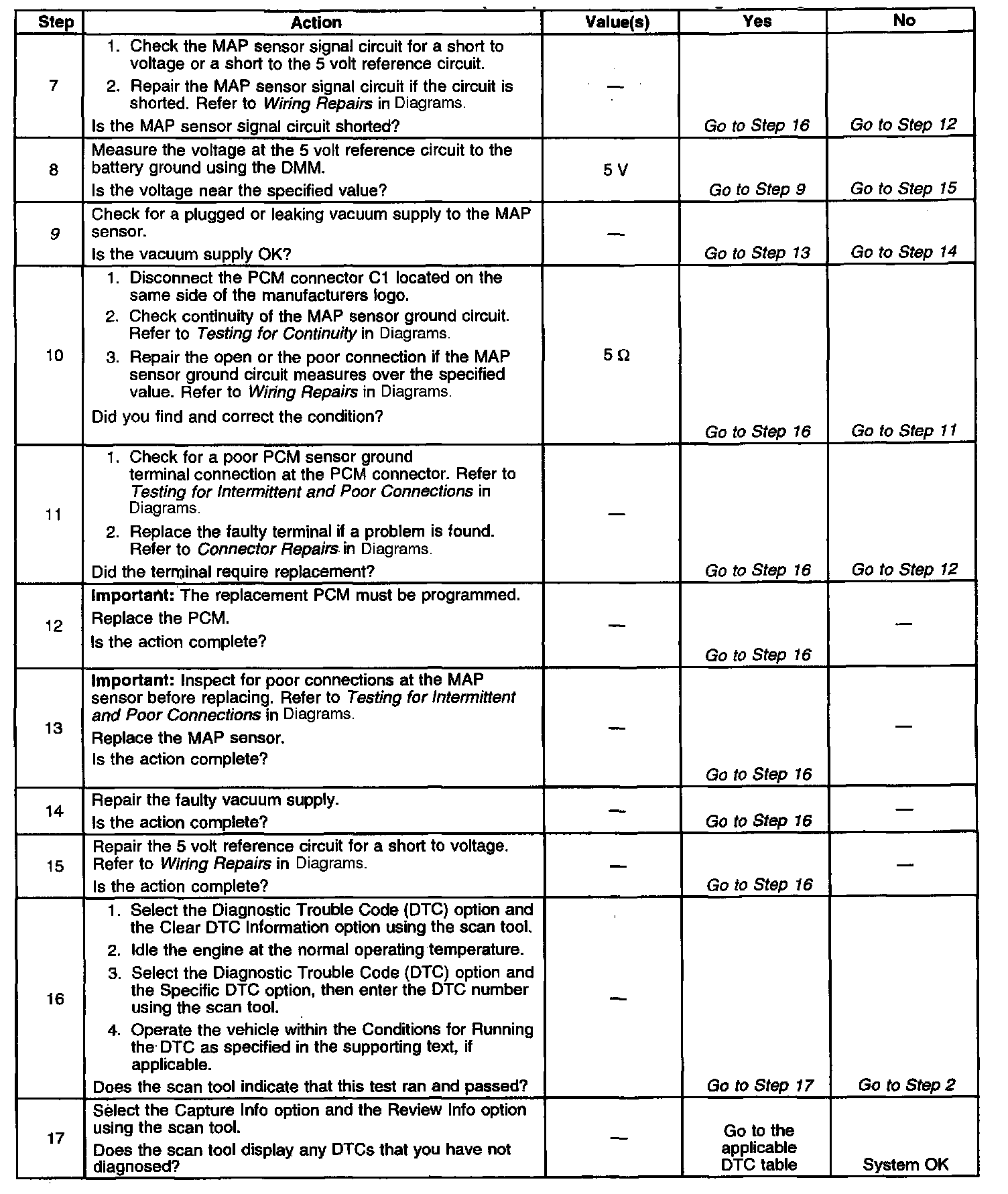 ^ The PCM 5.0 volt reference circuits are internally connected within the PCM. If all the MAP sensor circuits are OK, inspect the Exhaust Gas Recirculation (EGR) circuits for malfunctions.