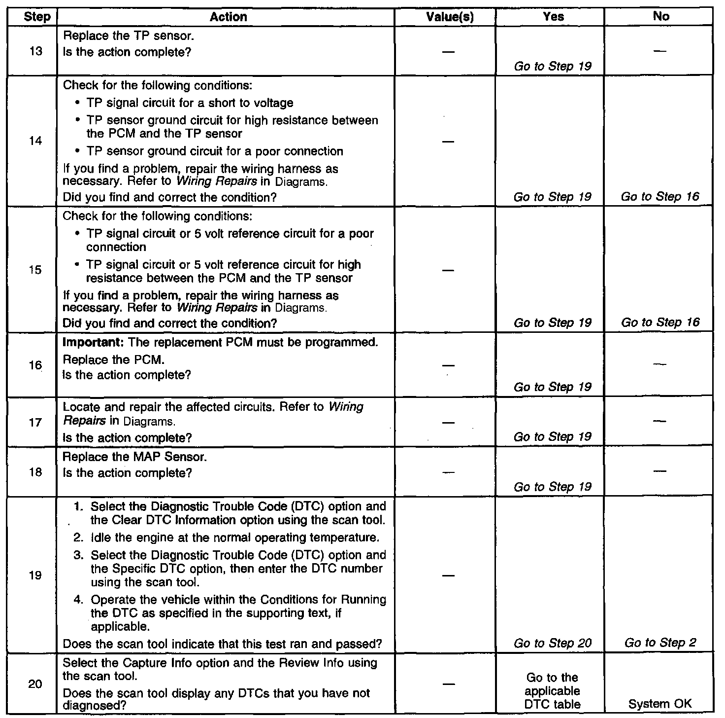 8. If the TP sensor voltage changes, there is no malfunction with the TP sensor wiring or the PCM.