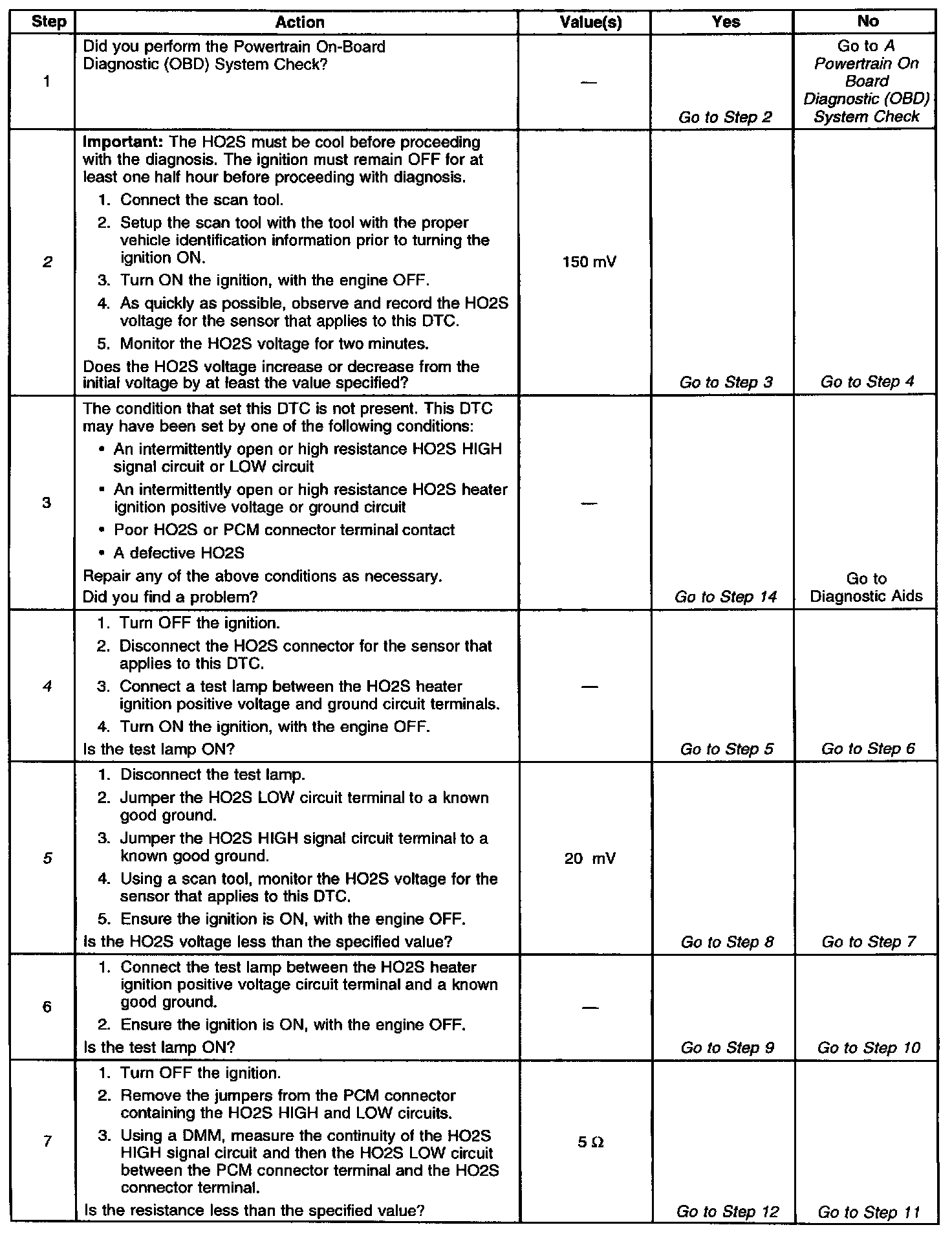 ^ An open or a short to voltage on either the HO2S signal or HO2S low circuits