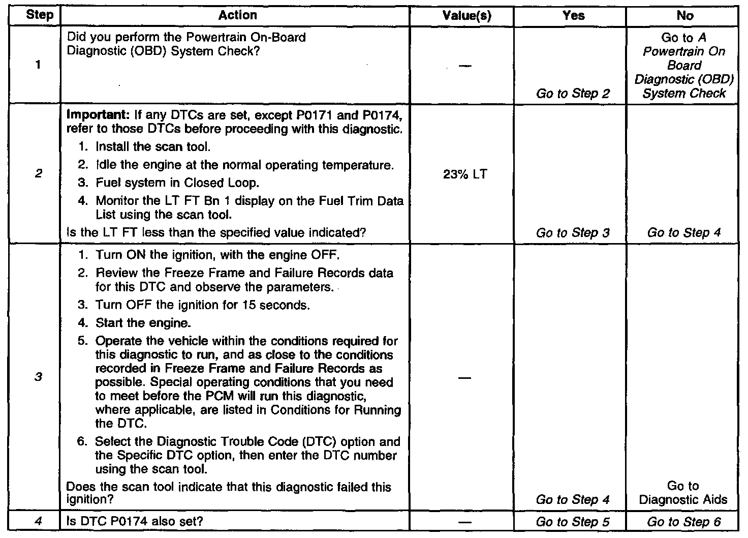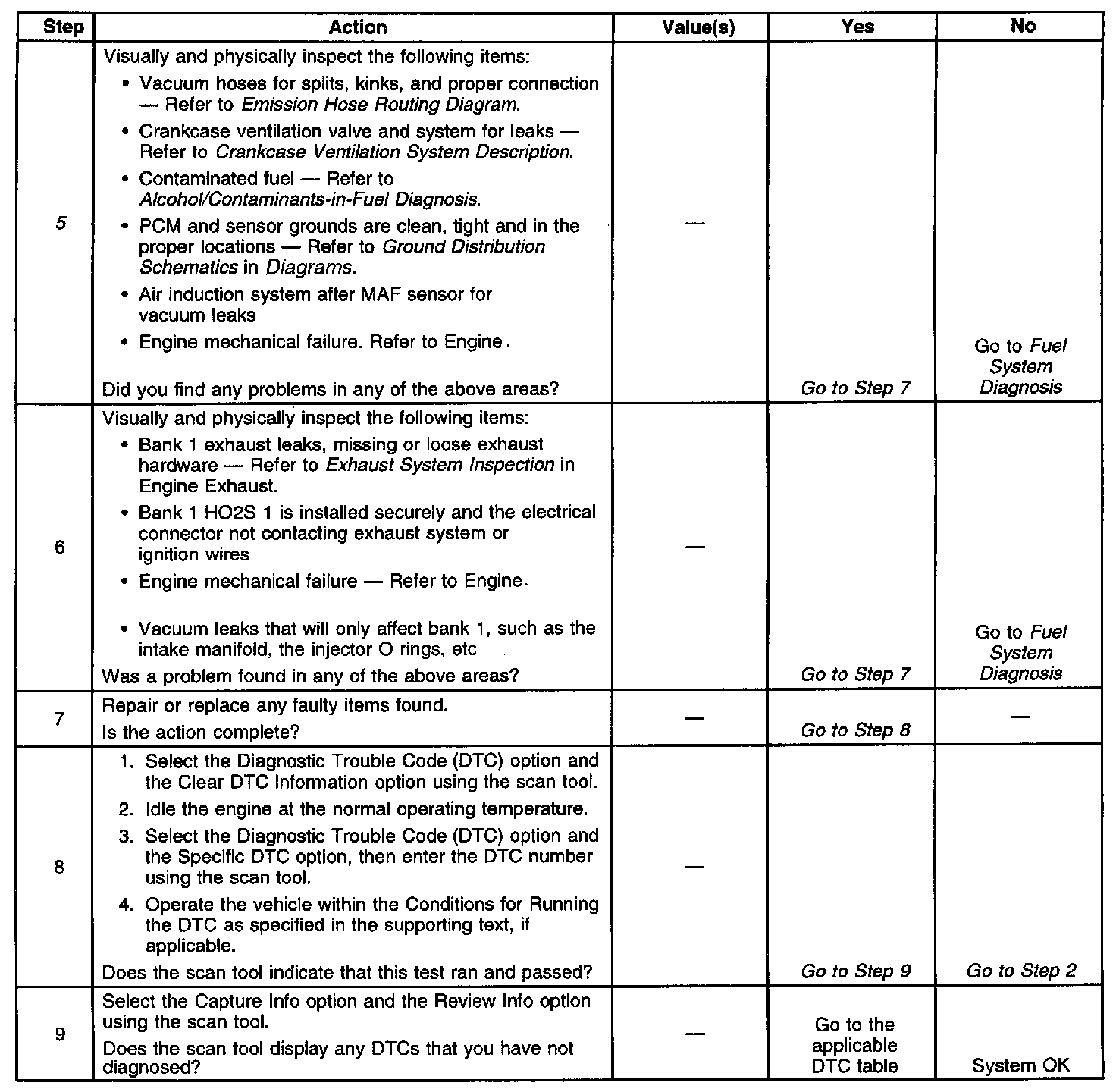 ^ A fuel delivery malfunction causes this DTC to set. Thoroughly inspect all items that cause a lean condition.