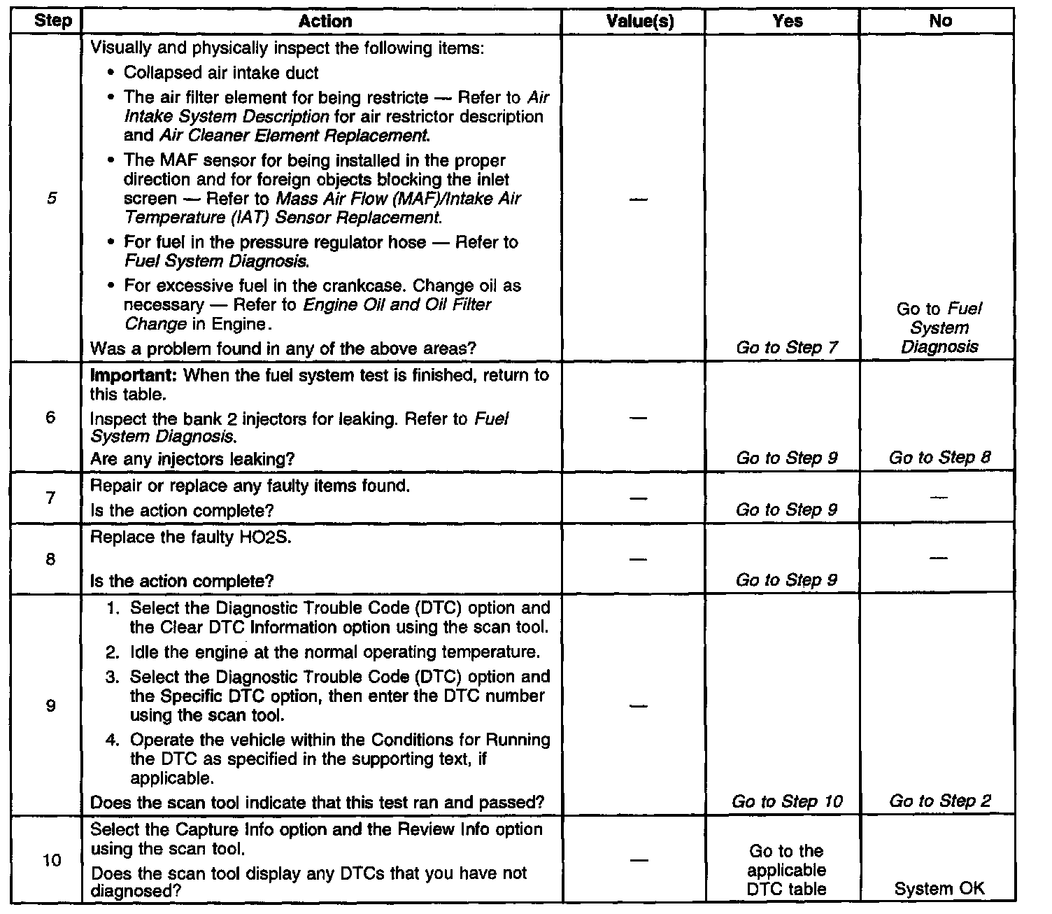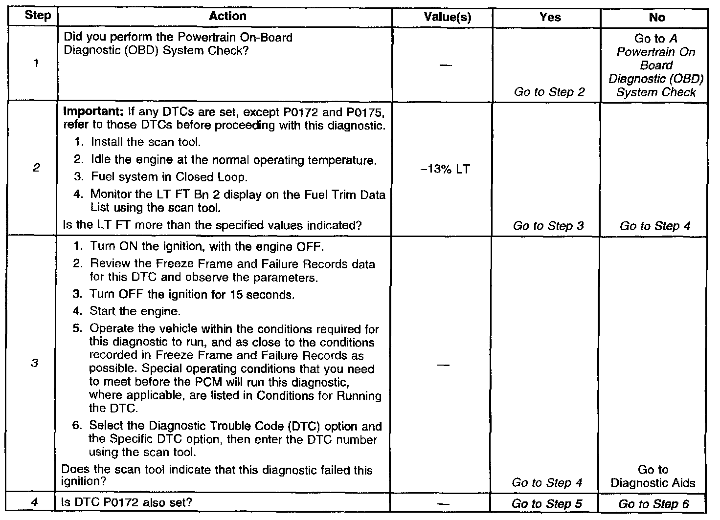 4. If DTC P0172 is also set, then both banks are operating rich. Inspect items that would cause both banks to operate rich.