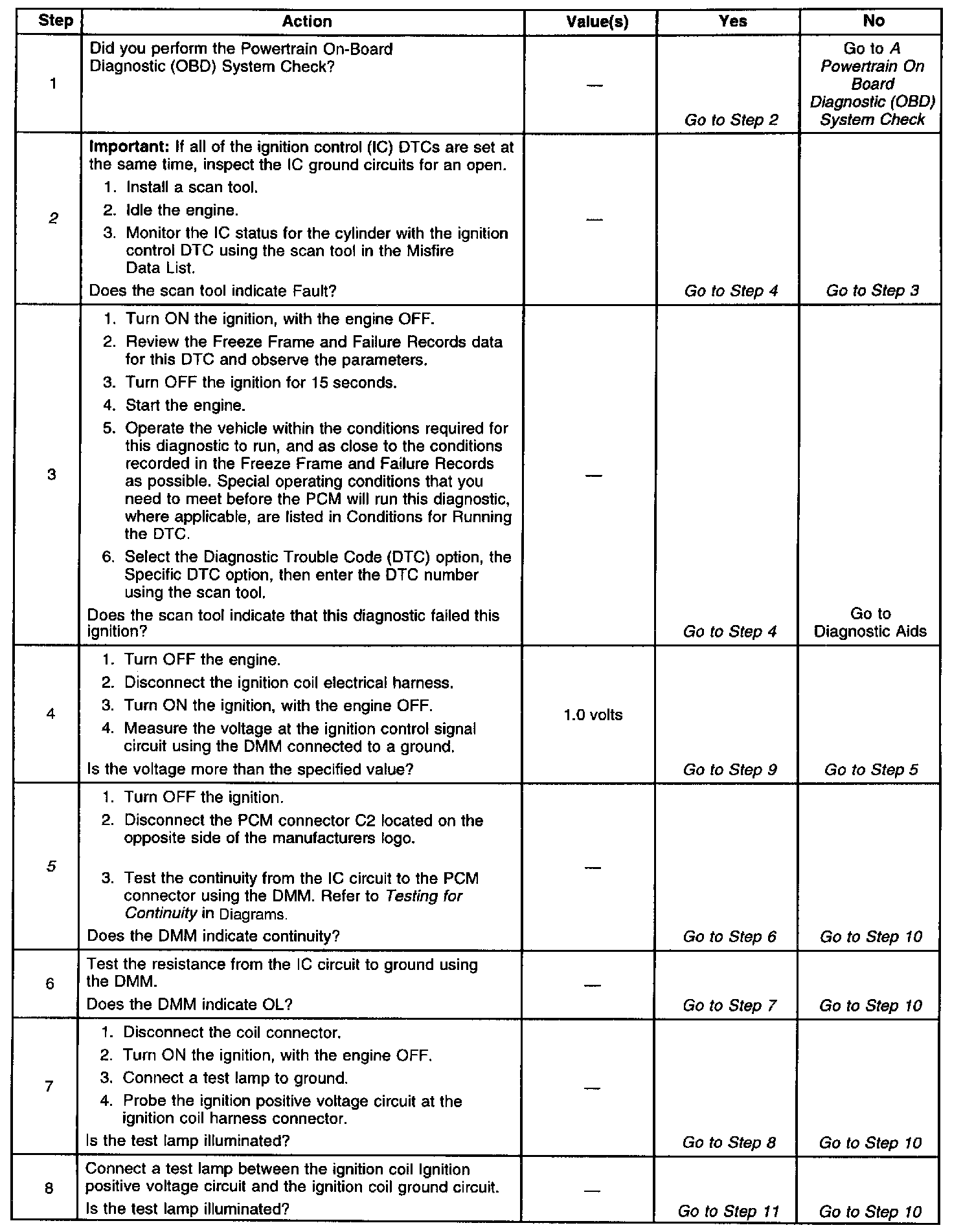 ^ The PCM detects the ignition control circuit is grounded, open, or shorted to a voltage.