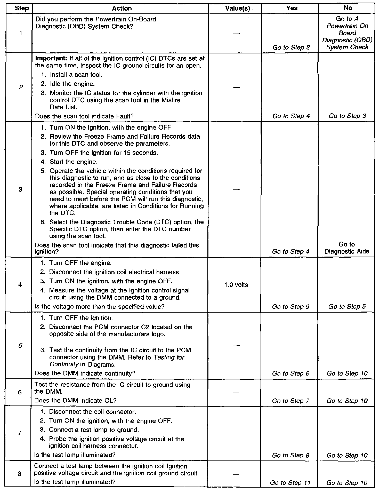 ^ The PCM detects the ignition control circuit is grounded, open, or shorted to a voltage.