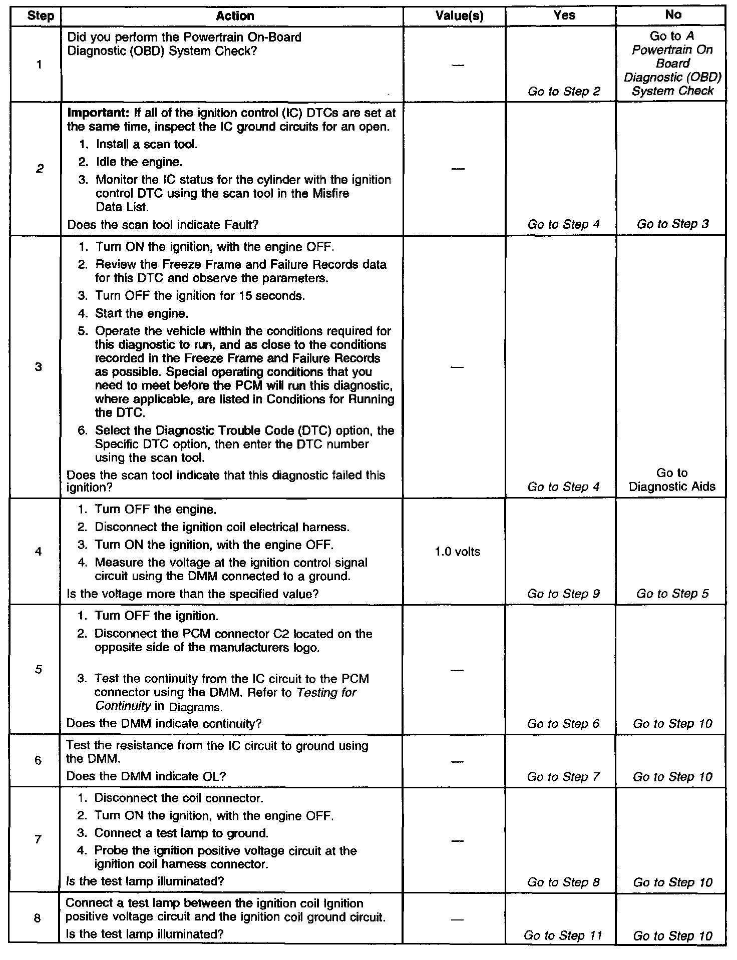 ^ The PCM detects the ignition control circuit is grounded, open, or shorted to a voltage.