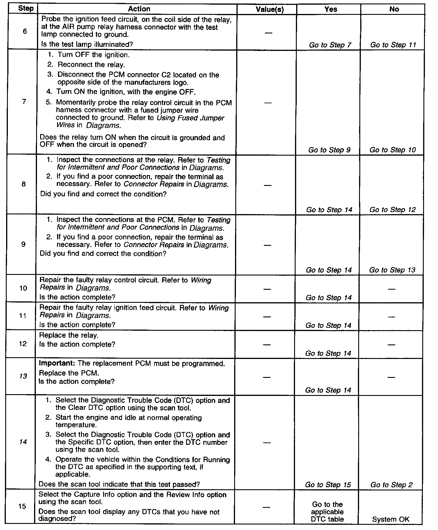 13. If no trouble is found in the control circuit or the connection at the PCM, the PCM may be faulty. However, this is an extremely unlikely failure.
