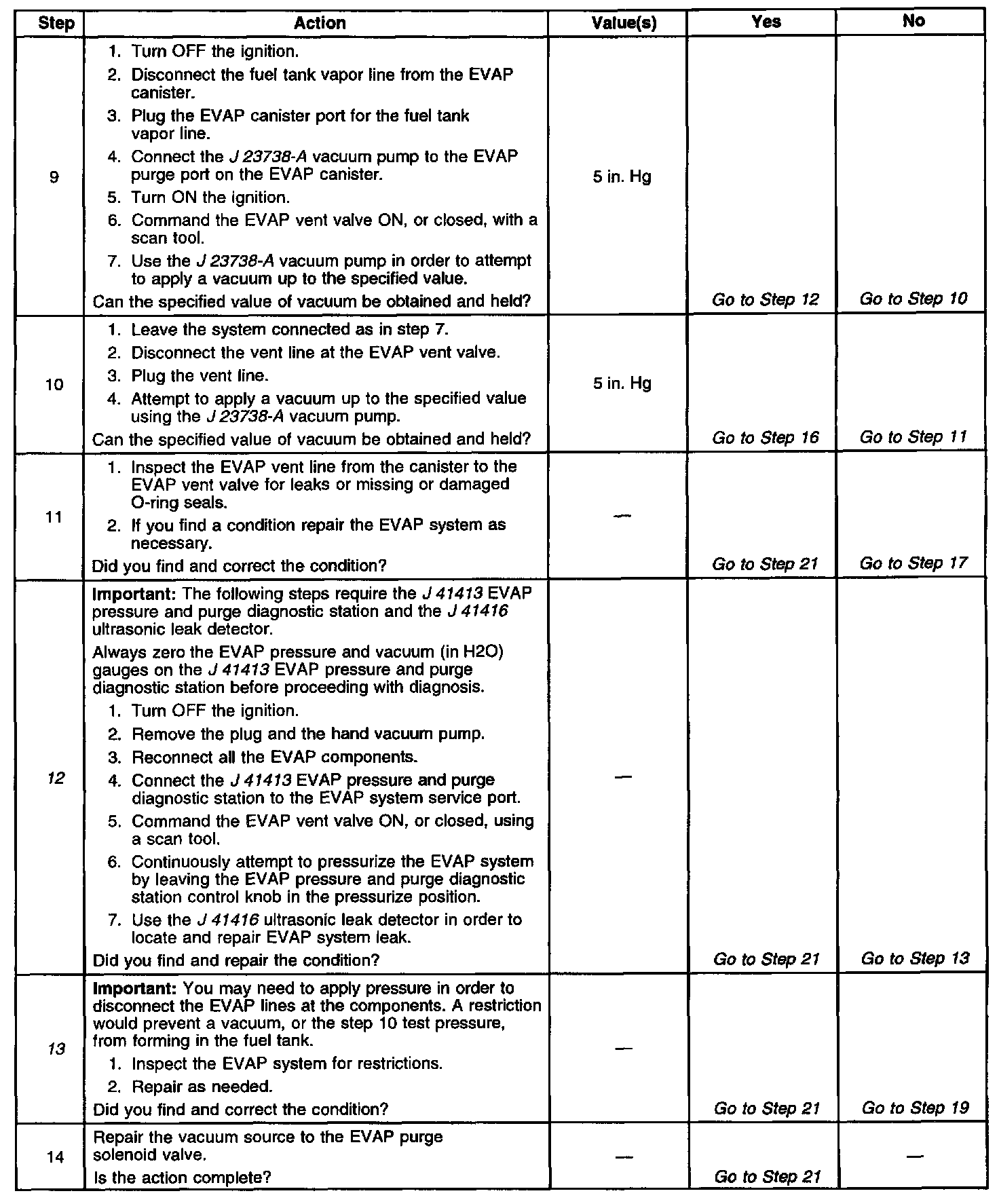 13. Tests for restrictions in EVAP system.