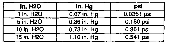 The vacuum and pressure in the EVAP system is measured in inches of Water (H2O). Most gauges measure vacuum in inches of Mercury (Hg) and pressure in pounds Per Square Inch (psi). The following shows how the values compare: