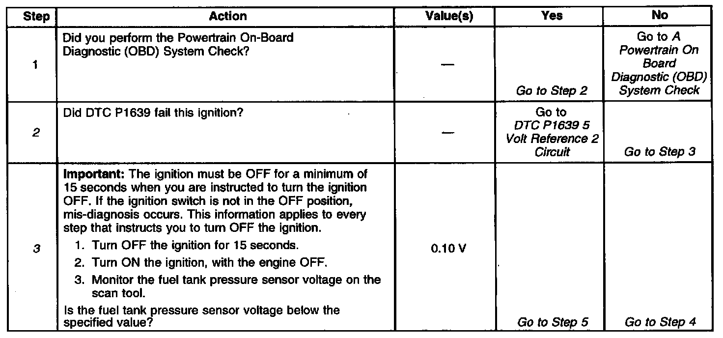 2. If DTC P1639 sets at the same time, this indicates that the 5.0 voltage reference circuit is shorted to a ground. The 5.0 volt reference circuit is internally connected within the PCM.