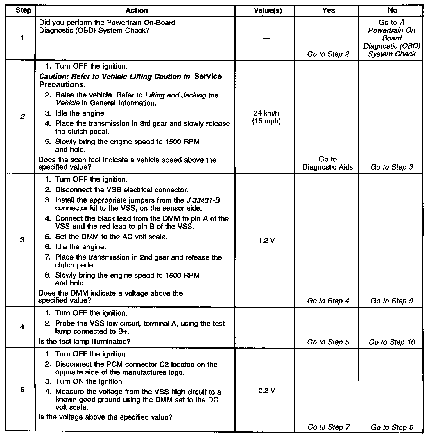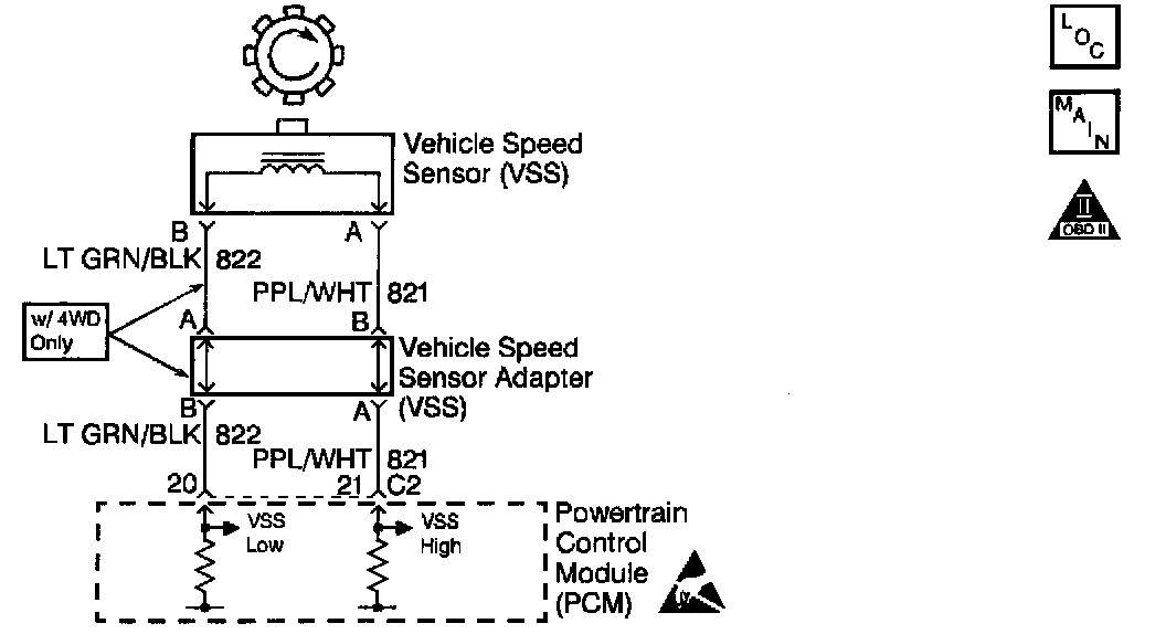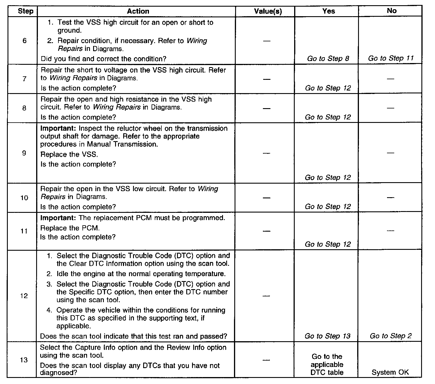 Inspect all of the circuits to the PCM and the VSS. Inspect the terminal connections at the VSS harness connector and at the PCM harness connector. If the vehicle is equipped with four-wheel drive, inspect the circuits and connections at the jumper harness. If all of the circuits and connections are OK, replace the PCM.