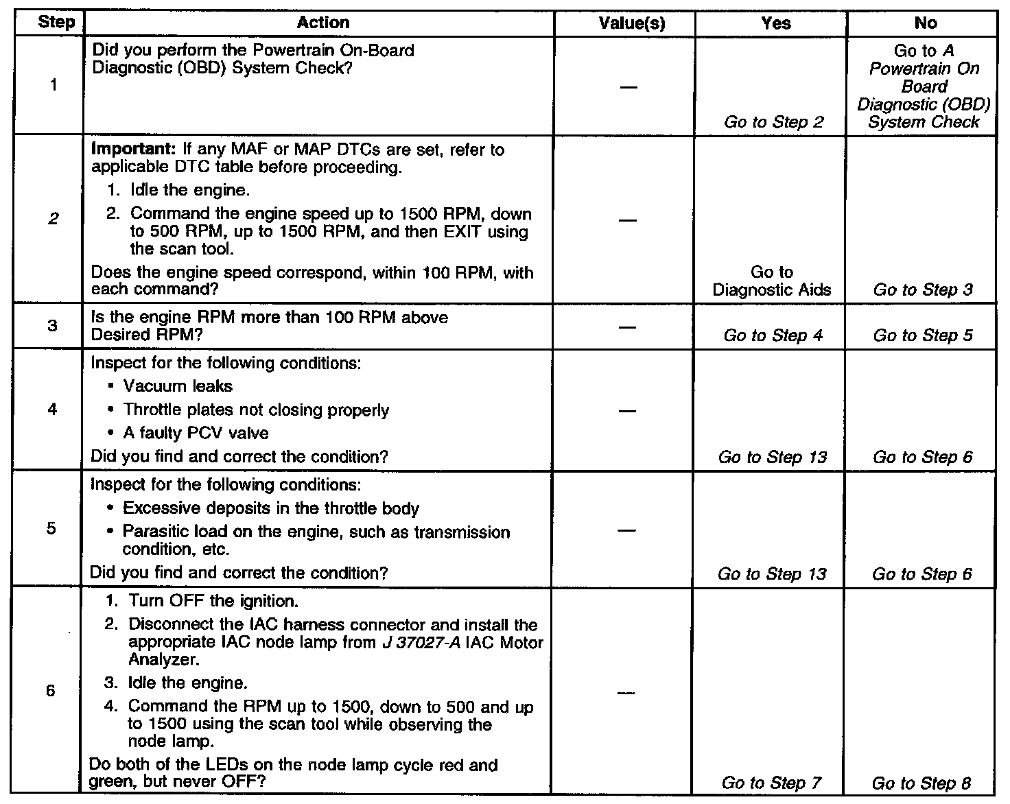 ^ The actual idle speed is 100 RPM less than the desired idle speed.