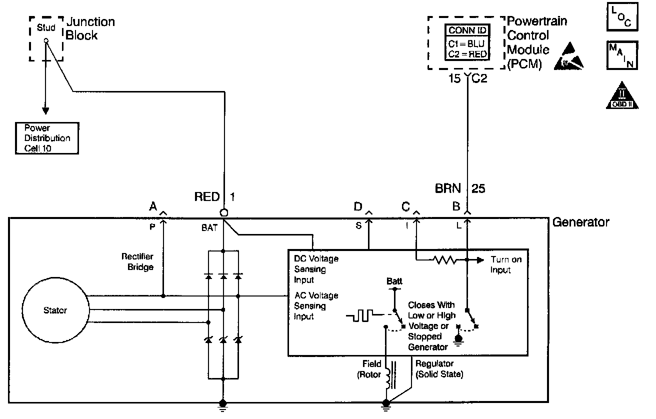 ^ Test the generator voltage sense circuit for high resistance or loose connections. These could cause an intermittent overcharging condition. Refer to A Diagnostic System Check - Starting and Charging in Starting and Charging. Testing and Inspection