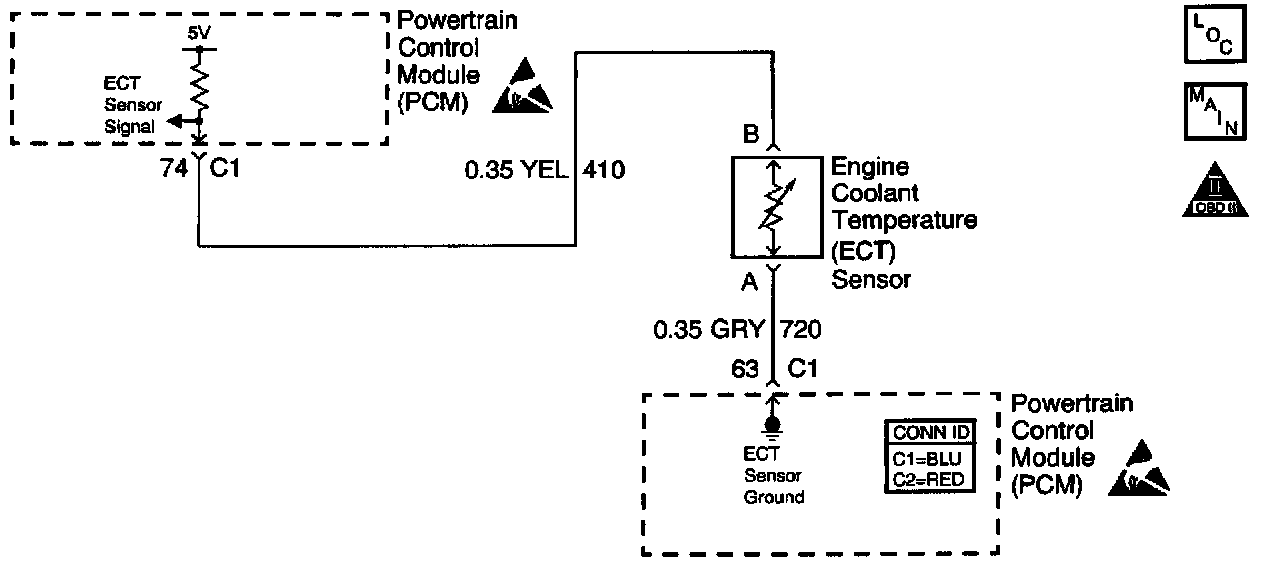 In order to reduce the engine temperature the Powertrain Control Module (PCM) has the ability to disable a number of fuel injectors during an engine over temperature condition. The PCM considers the engine over temperature whenever the Engine Coolant Temperature (ECT) reaches a predetermined temperature. This DTC sets in order to show that the PCM detected an over temperature condition and that the system engaged the protection mode. The PCM sends the Instrument Panel Cluster (IPC) engine coolant temperature information via the Class 2 circuit. This information is used for controlling the coolant temperature gauge and for displaying a message when the coolant temperature is out of the normal operating range. The IPC displays a message when the engine coolant temperature is more than 121°C (250°F).