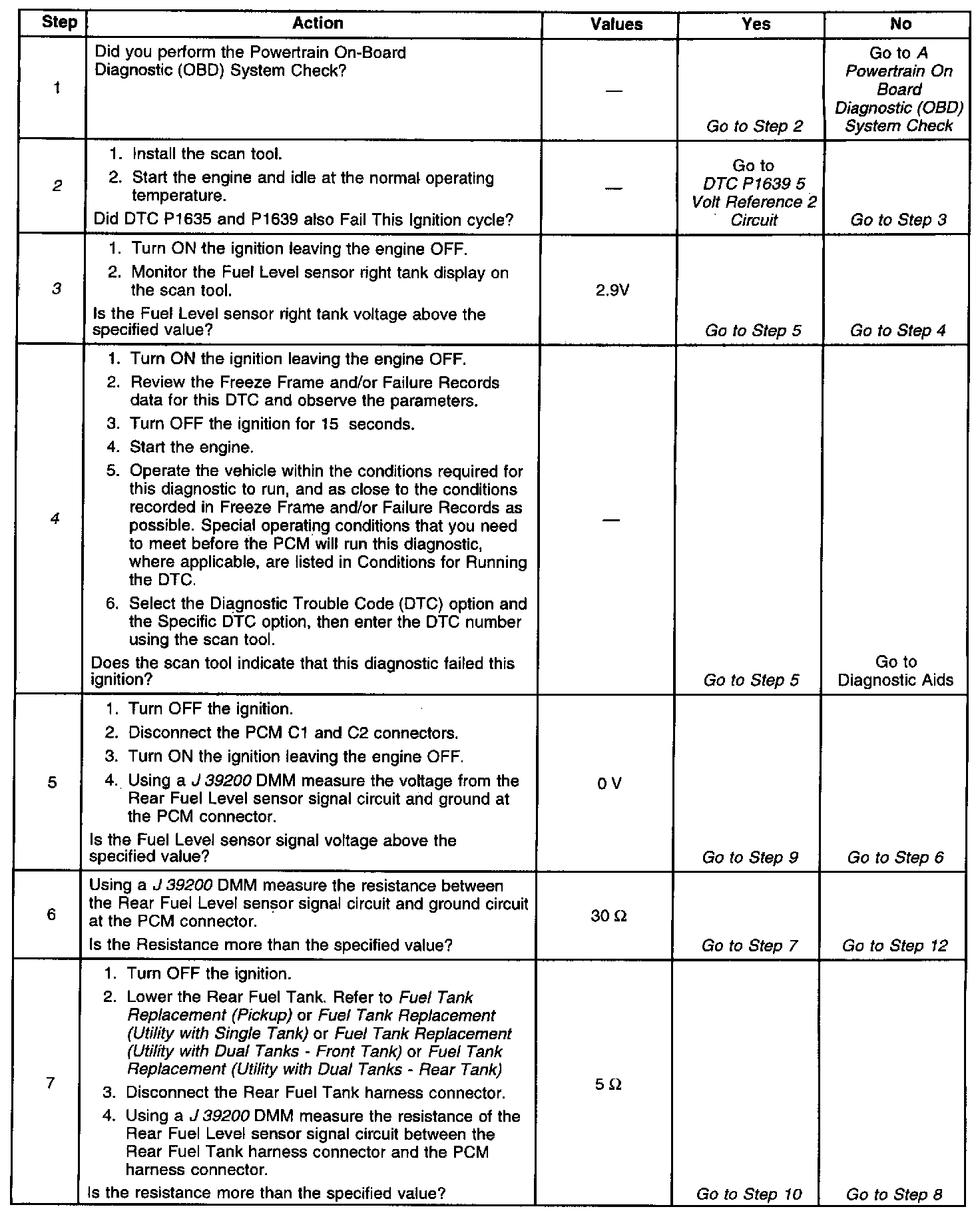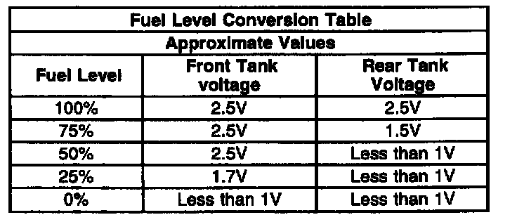 ^ The voltages in the Fuel Level Conversion Table are approximate values. Use this table to aid in diagnosis.