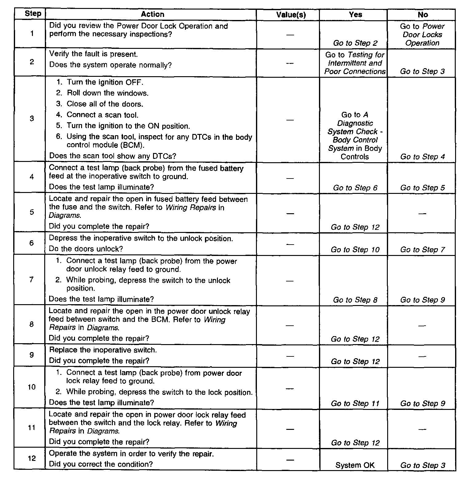Power Door Locks - Switch Inoperative - One