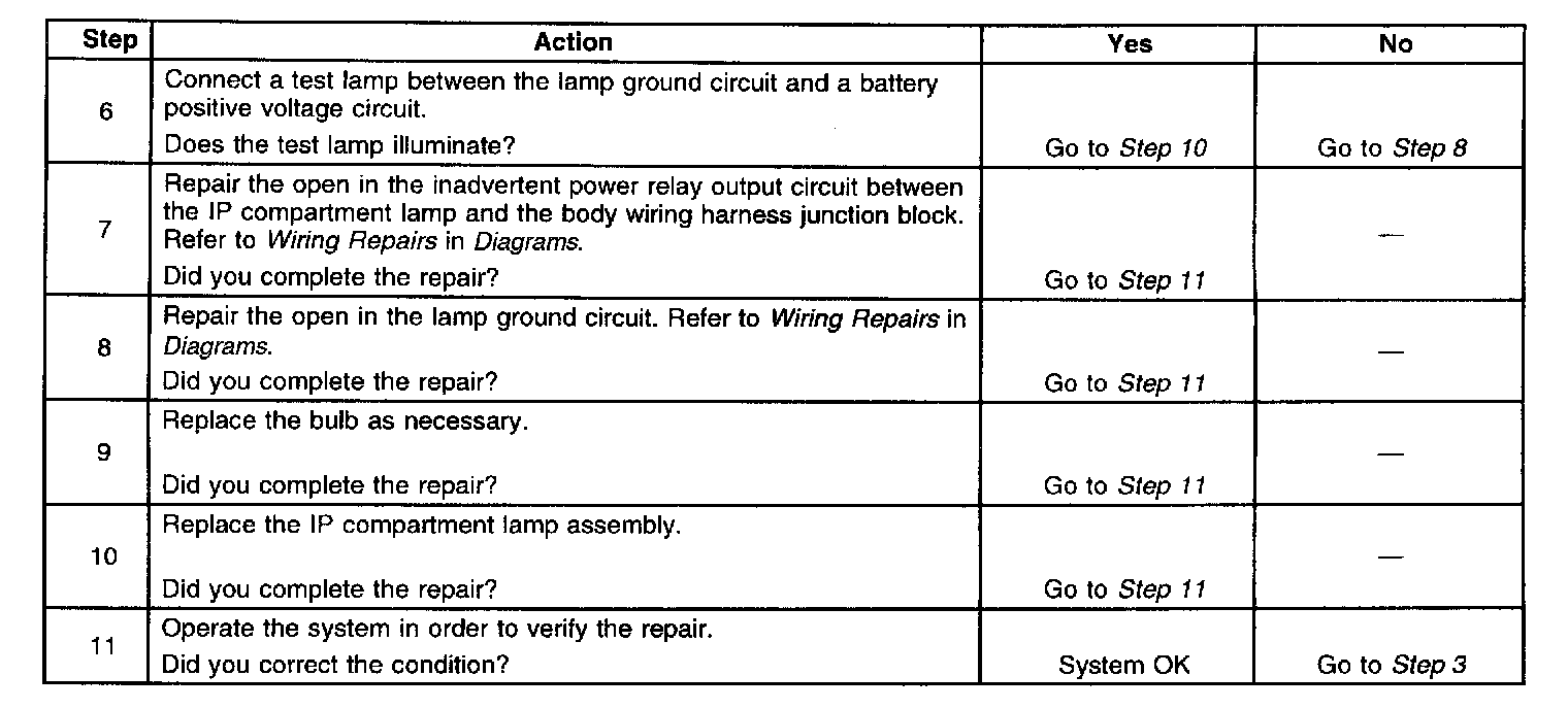 IP Compartment Lamp Inoperative