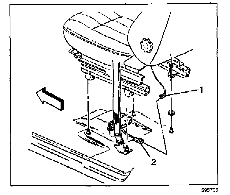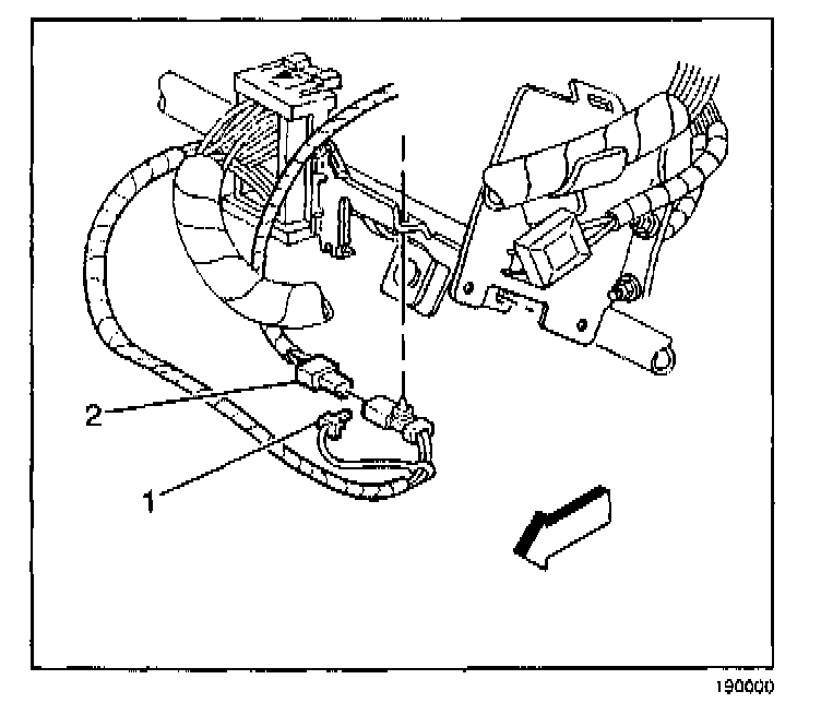 1. Ensure the ignition is in the OFF position and the key removed from the ignition key lock cylinder.2. Connect the passenger side air bag yellow 2-way connector (1) to the vehicle harness yellow 2-way connector and install the CPA (2) under the passenger seat.