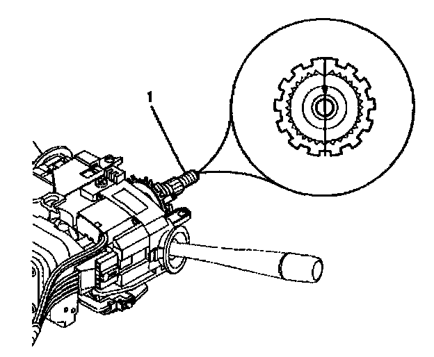 - The block tooth (1) of the steering column shaft assembly is in the 12 o'clock position.
