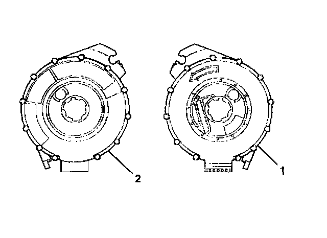 5. For no centering window on the front side (2) of the inflatable restraint steering wheel module coil and no spring service lock on the back side (1), perform the following steps: