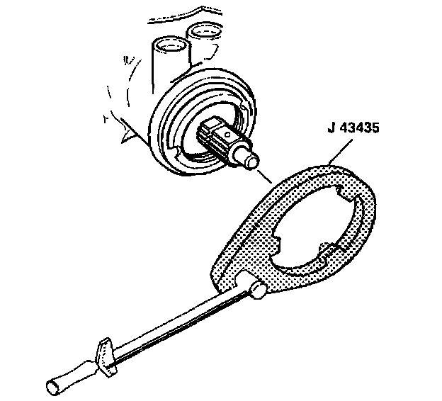 2. Remove the coupling shield retainer and the lock nut from the steering gear housing using J43435 and a torque wrench.