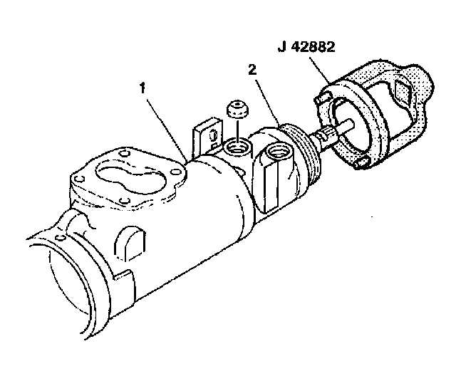 4. Connect the adjuster nut assembly (2) to the steering gear housing (1) using J42882.