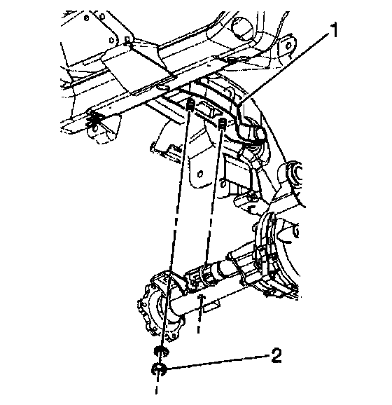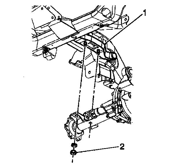 2. Install the carrier assembly upper mounting bolt (1), and the nut (2).