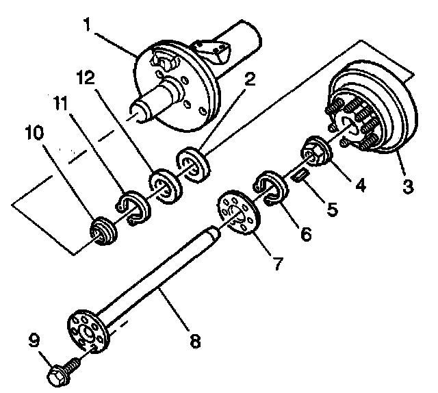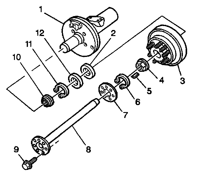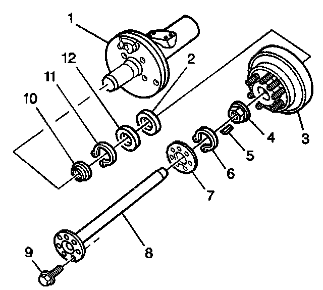 3. Remove the axle shaft. Refer to Axle Shaft Replacement (8 1/2, 9 112 Ring Gear) or Axle Shaft Replacement (10 1/2 Ring Gear).
