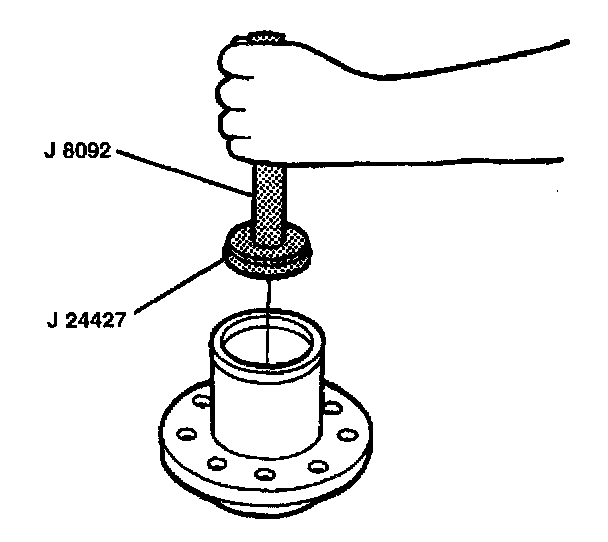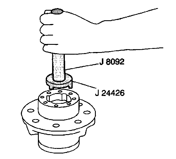 1. Install the outer bearing cup into the hub using the J 8092 and the J 24426.