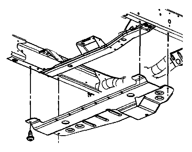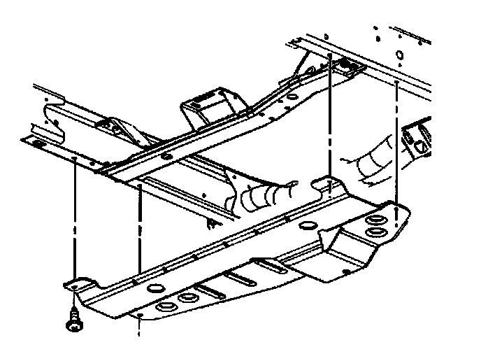 1. Install the four bolts securing the transfer case shield to the cross member.