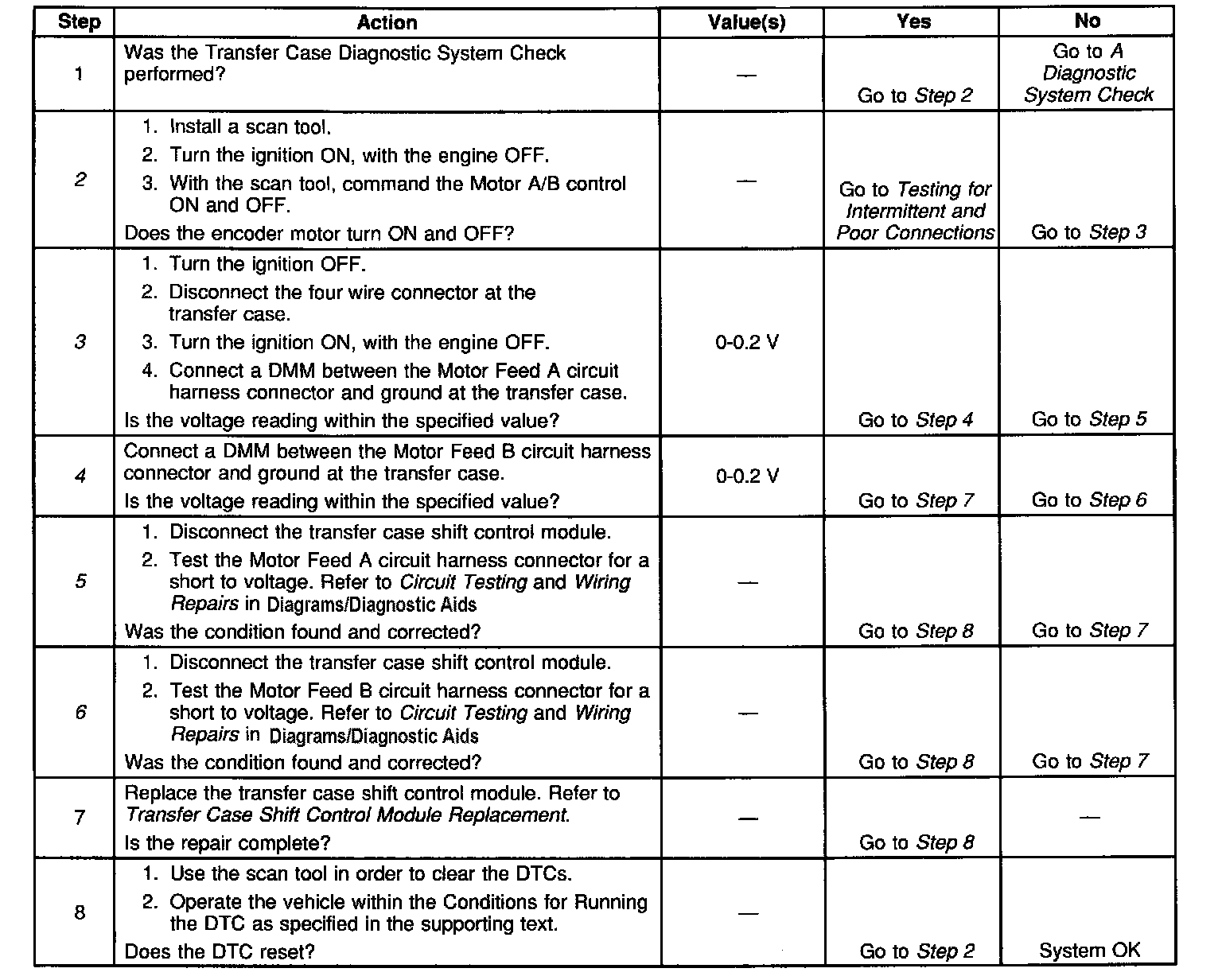 ^ The Transfer case shift control module senses a high voltage in the Motor Feed A or Motor Feed 8 circuits when a low voltage is expected.