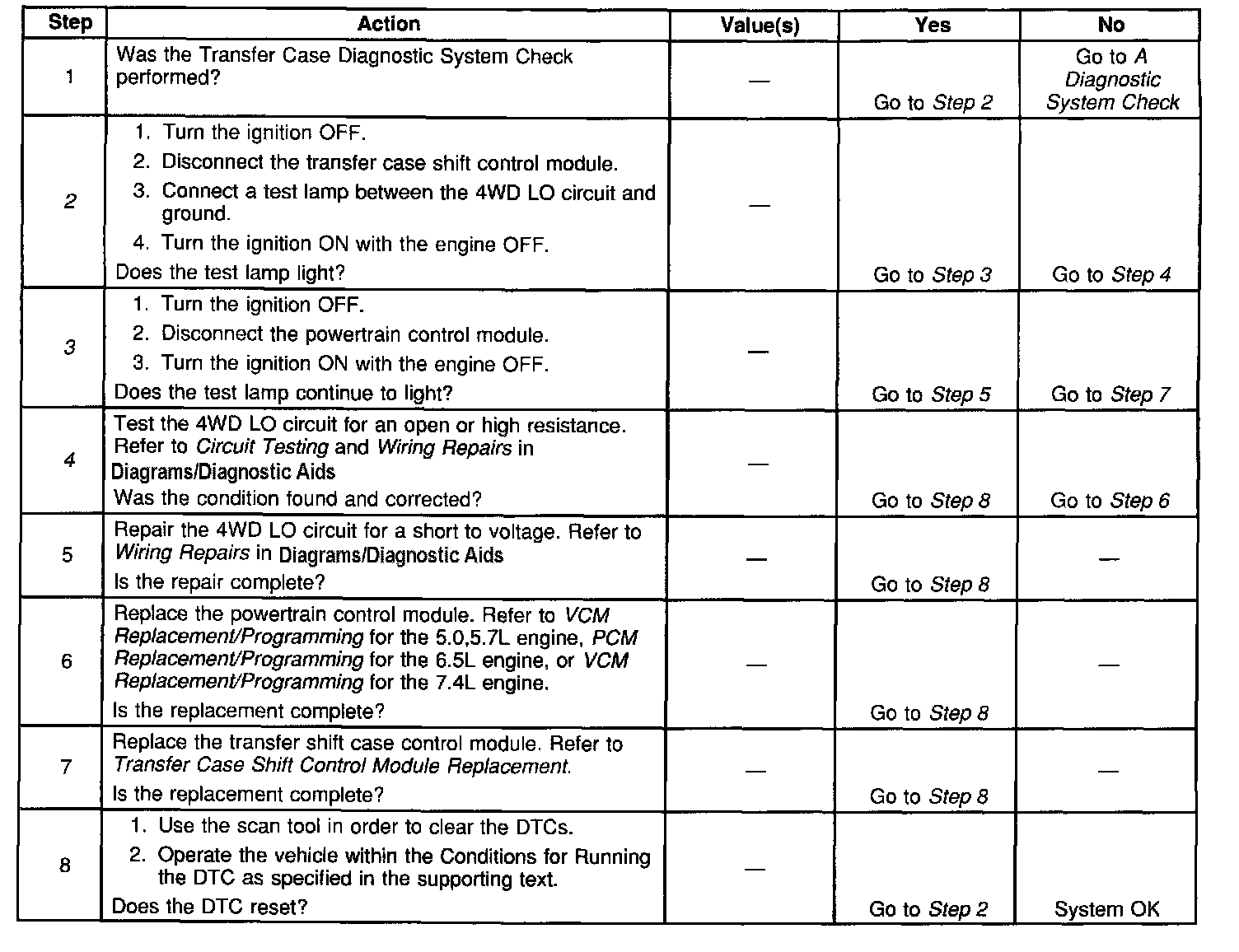 5. Repairs the 4WD LO circuit for a short to voltage.