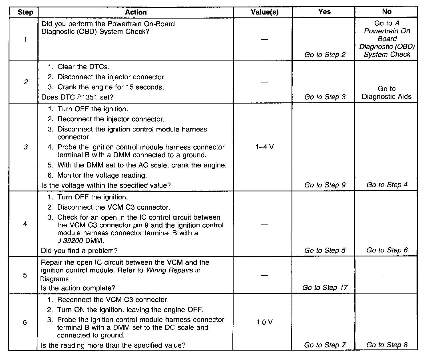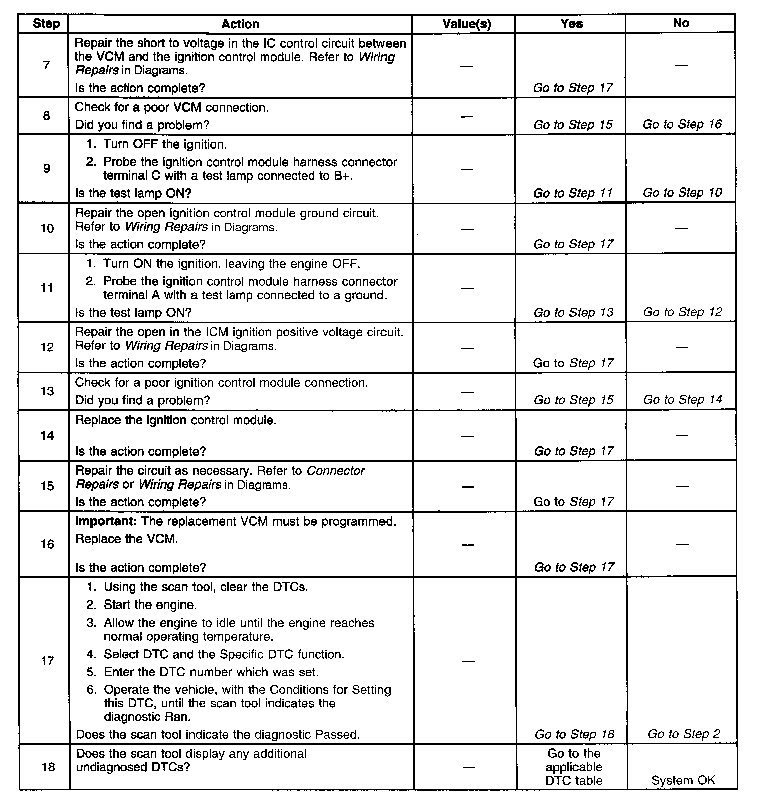 3. This step checks if the IC signal from the VCM is available at the ignition control module.