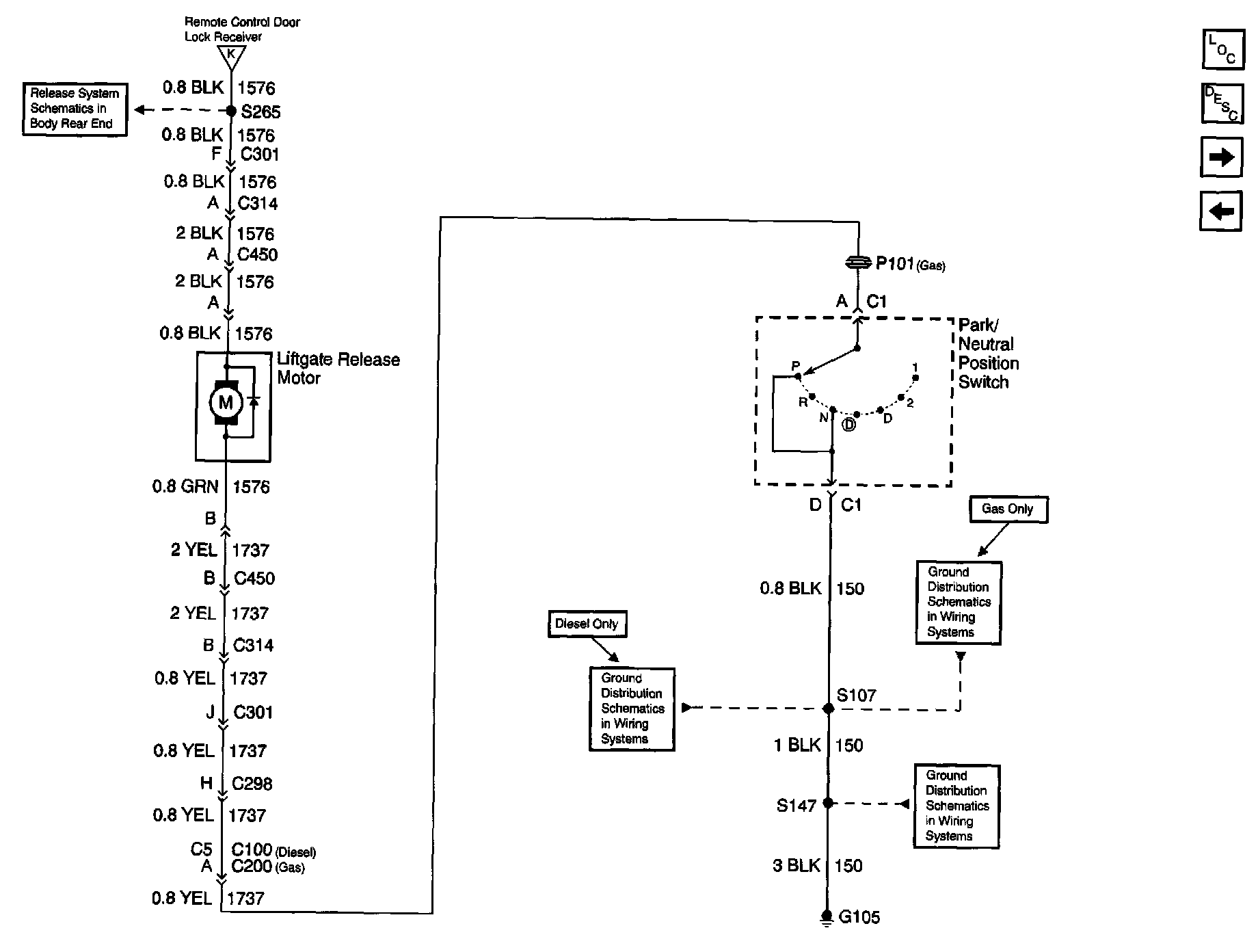 Keyless Entry Schematics (Except Luxury): Liftgate Release Motor: