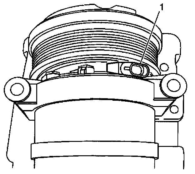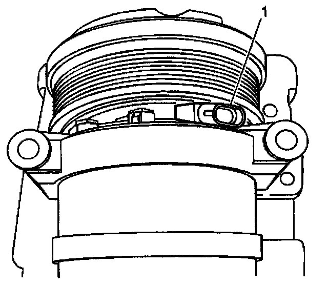 8. Mark the clutch coil terminal location (1) on the compressor front head.