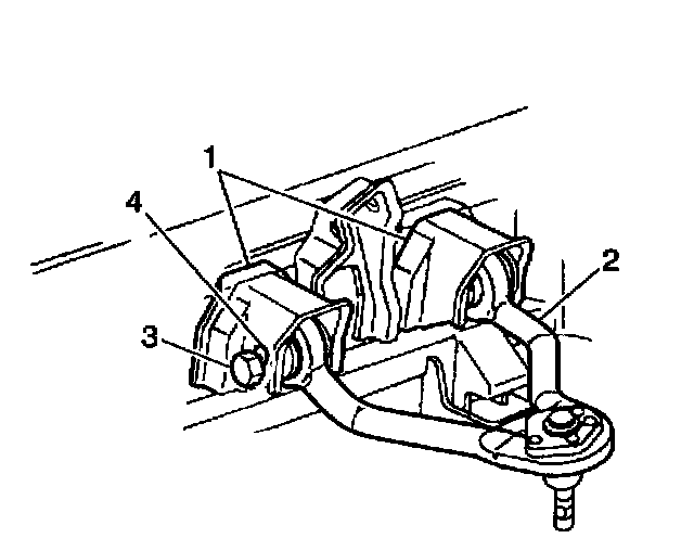 2. Install the bolts and the cams (4) through the frame brackets and through the control arm (2).