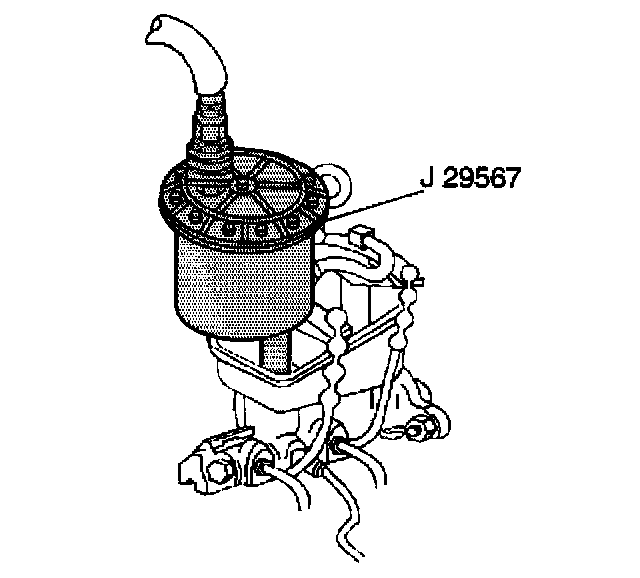 4. Install the J 29567 Brake Bleeder Adapter to the master cylinder.