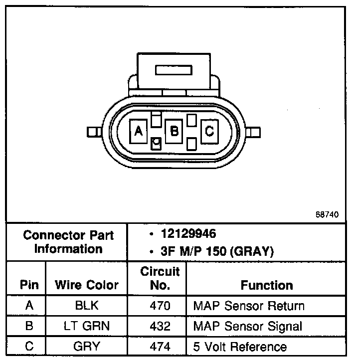 Manifold Absolute Pressure (MAP) Sensor Connector: