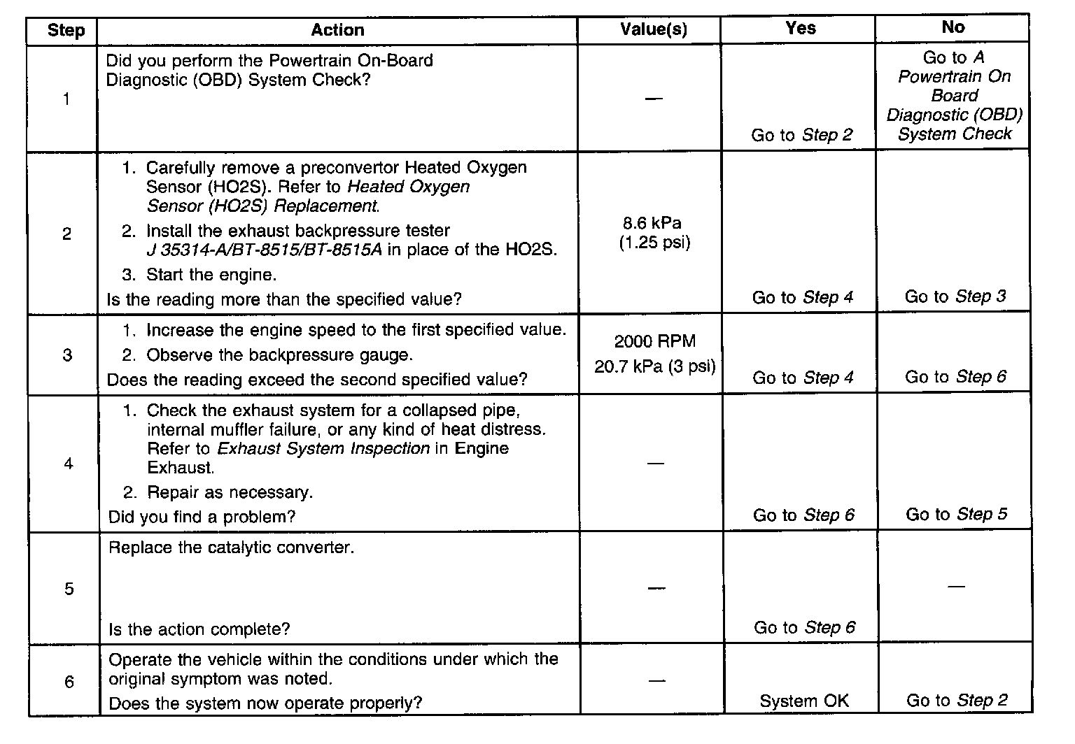 Restricted Exhaust System Check:
