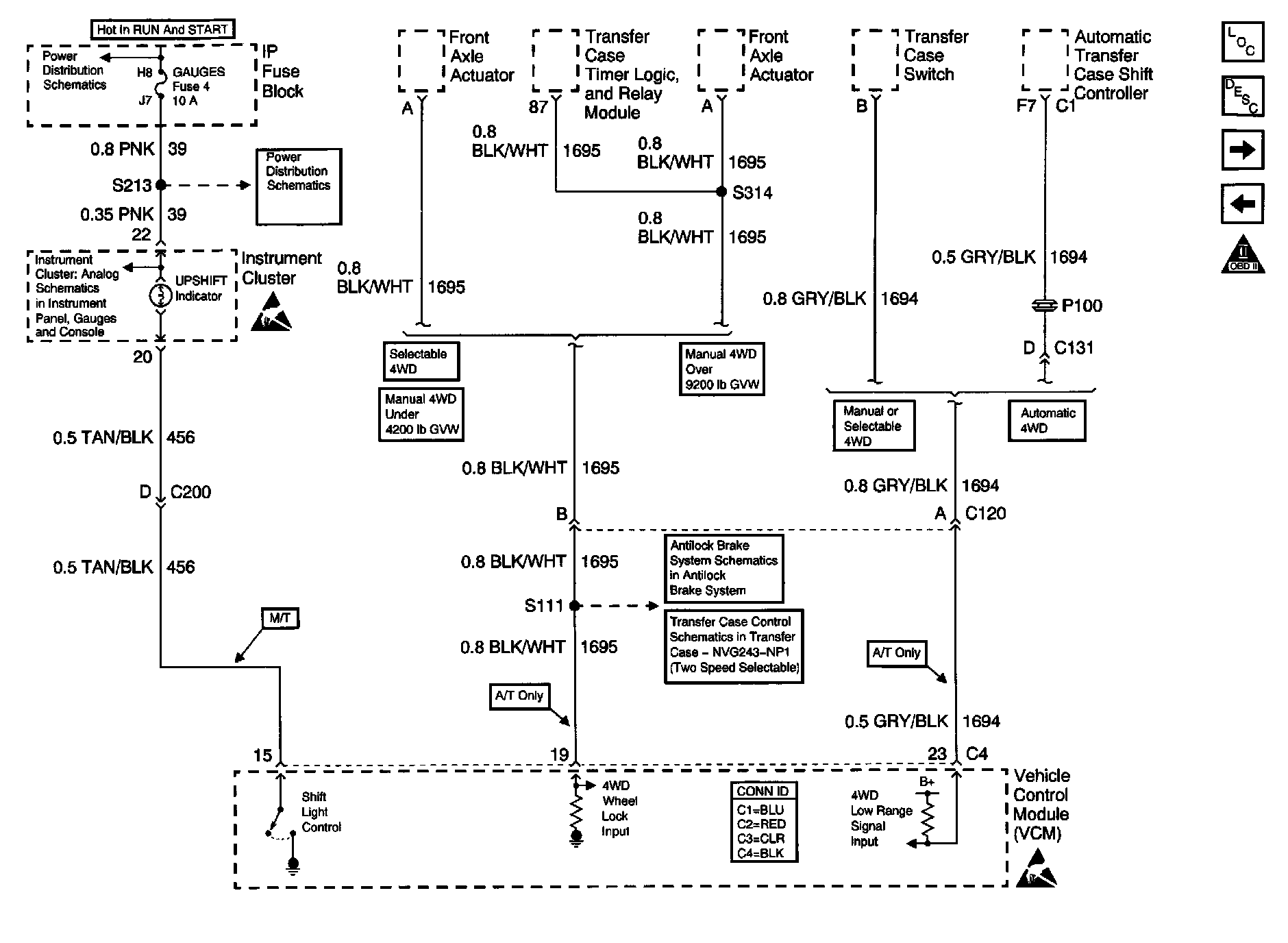 Engine Controls Schematics (Base Engine): Transfer Case Interface And Upshift Indicator: