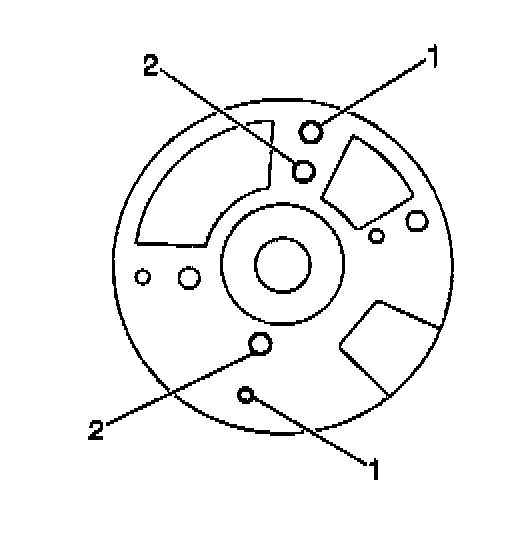 11. Align the rotor segment as shown for a V6 engine (1) or V8 engine (2).
