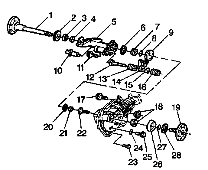 5. Carefully tap the axle shaft (output shaft) (19) into place with a soft mallet.