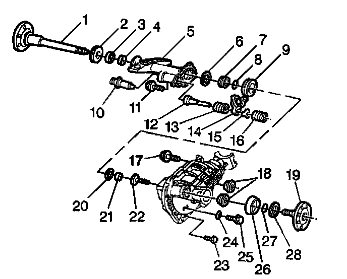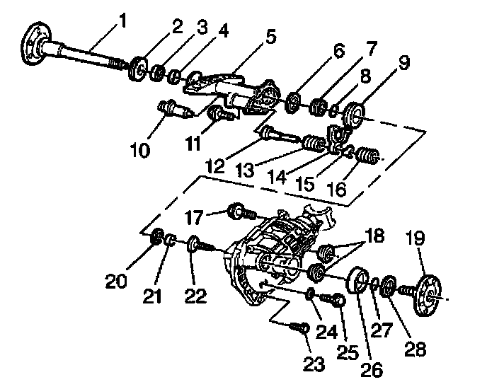 4. Install the axle shaft (output shaft) and tube assembly. Refer to Output Shaft, Bearing, and Tube Replacement.