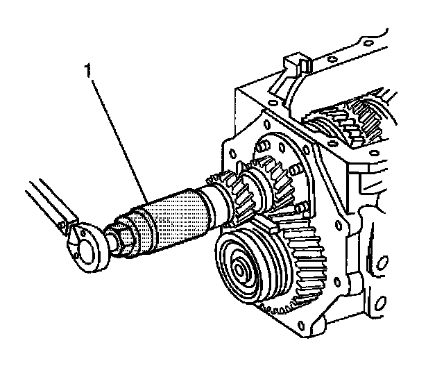 12. (4WD models) Using the J 38805 (1), remove the mainshaft nut and washer.